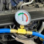 - TROUVEZ sous le capot de la voiture, trouvez le port de service basse pression (LP) et insérez l’embout en plastique du tuyau.