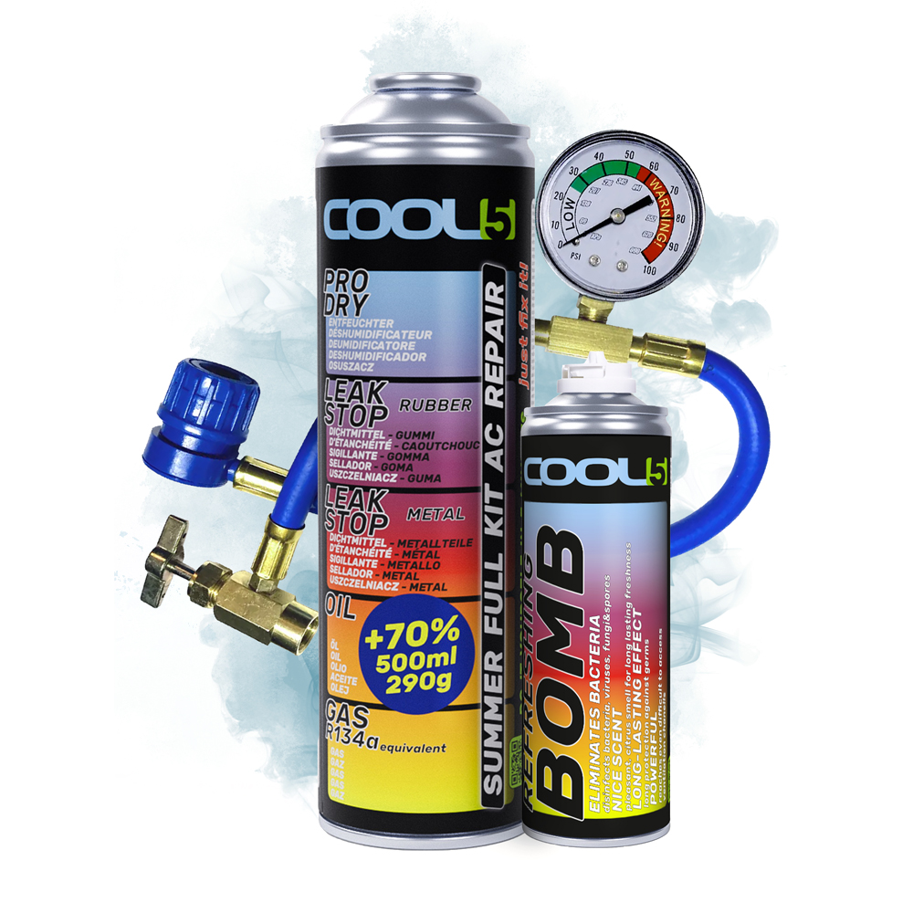 COOL5 5w1 SUMMER FULL KIT AC REPAIR R134a, Przewód z manometrem & Refreshing Bomb